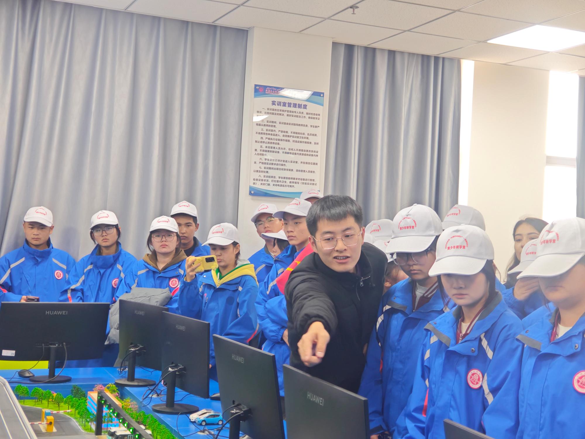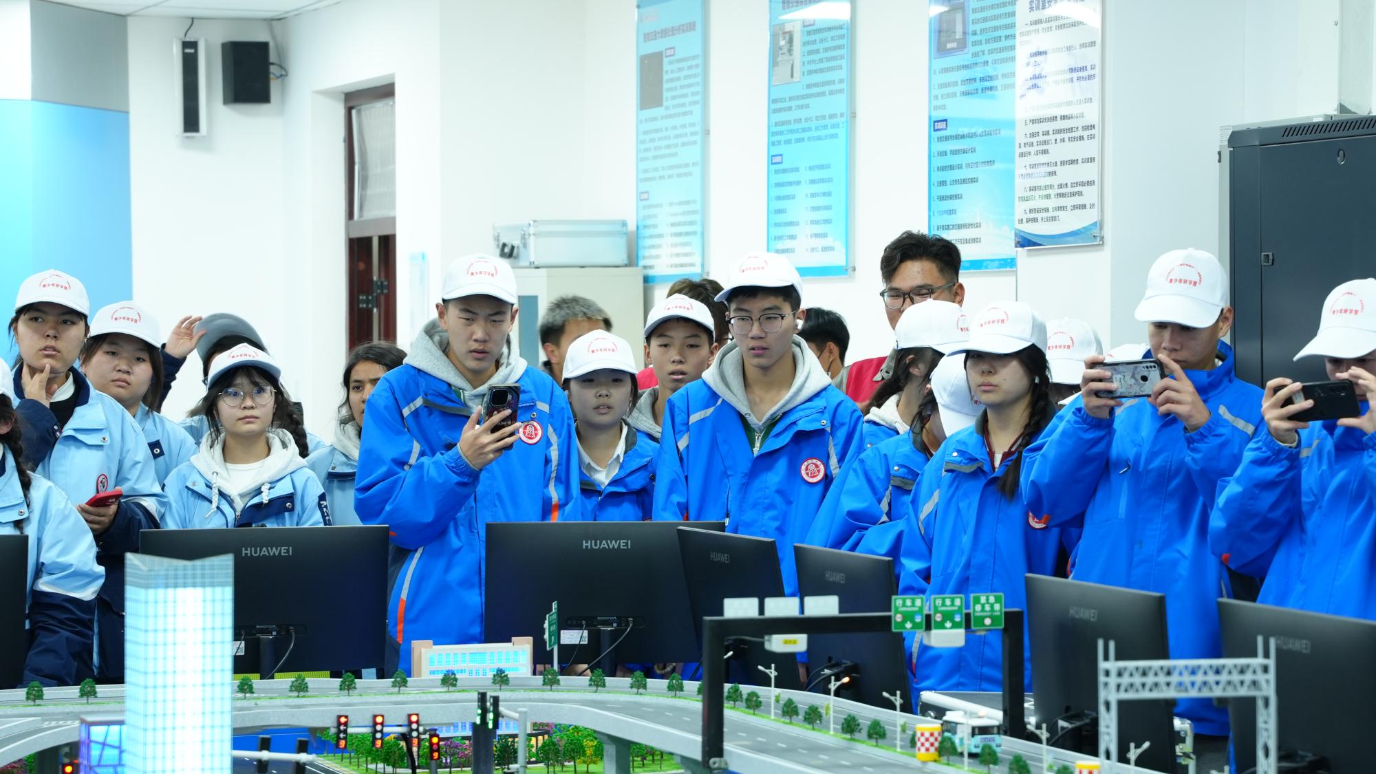 在华为ICT产业学院,人工智能工程学院教师通过场景模拟,生动展示了智能交通领域的前沿应用。师生们观摩了车路协同、智能信号控制等系统的实际运行,并在互动体验中感受人工智能技术如何重塑未来出行模式。现场气氛热烈,同学们与讲解教师深入交流,真切体会到科技创新为生活带来的变革。