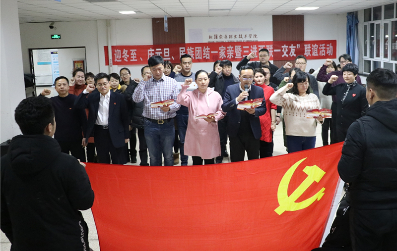 学院党委书记、副院长王瀚同志亲临活动现场,与各族师生在说说唱唱、聚聚聊聊中共同体验民族团结融情活动。分院党总支以“不忘初心、牢记使命”为主题将“党员政治生日”与党员党性教育相结合,让党员常思“当初入党为什么、如今在党做什么、今后为党留什么”,自觉加强党性锻炼,严格规范党员行为,进一步提高党员队伍的凝聚力和战斗力。活动现场学院党委书记、副院长王瀚给12月入党的党员颁发党员生日贺卡,分院党总支书记李大严带领全体党员重温入党誓词活动,教育引导党员时刻牢记入党誓词,自觉遵守党的章程,终身践行入党誓词,始终保持昂扬向上的奋斗激情。