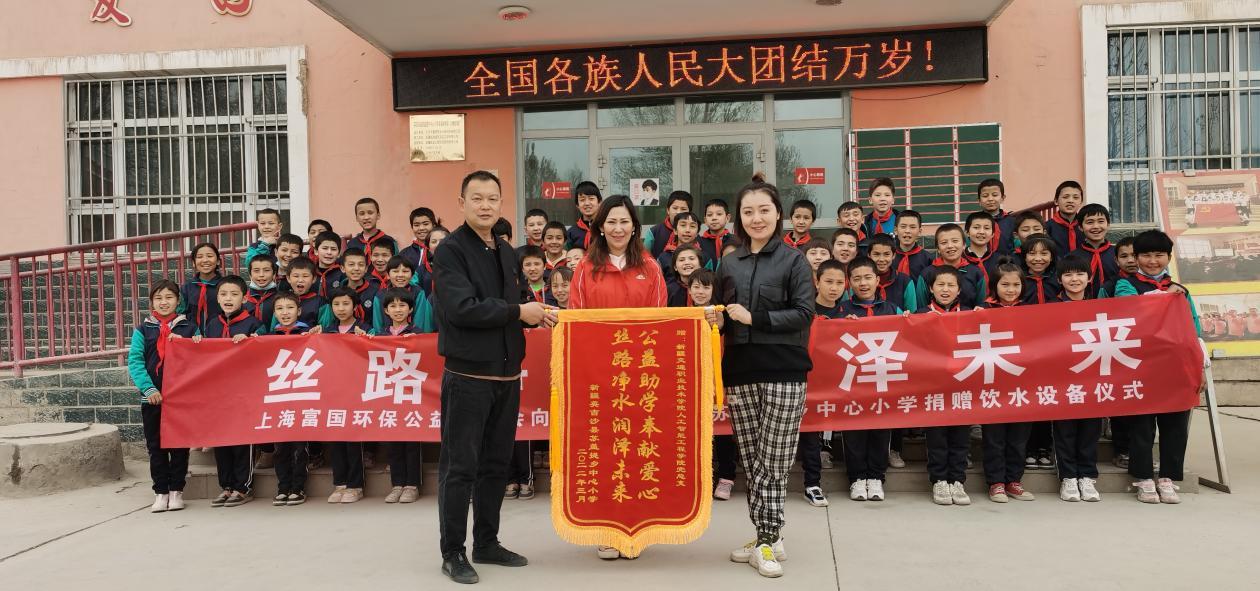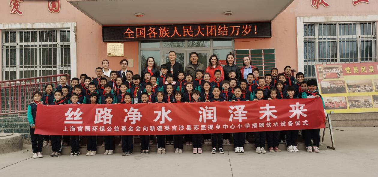 “丝路净水 润泽未来”主题公益行动,由上海富国环保公益基金会向英吉沙县苏盖提乡中心小学赠送了10台总价值为108000元的国内顶尖品牌的学生专用大容量温开水纯净水机,希望由此可以提高师生的饮水条件,让校园里的孩子们能够喝到有温度的饮用水,孩子们拥有健康的身体,可以更好的努力学习,快乐成长。