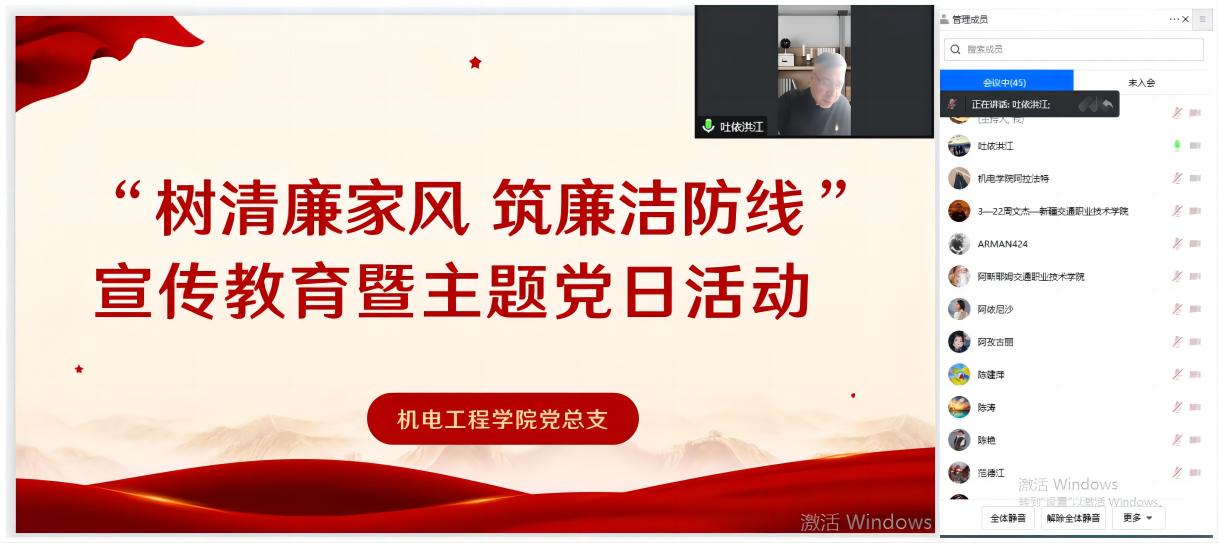 1月9日,机电工程学院党总支组织召开“树清廉家风 筑廉洁防线”宣传教育暨主题党日活动,会议由党总支副书记吐依洪江·肉孜主持,总支全体成员参加了会议。