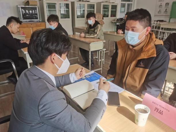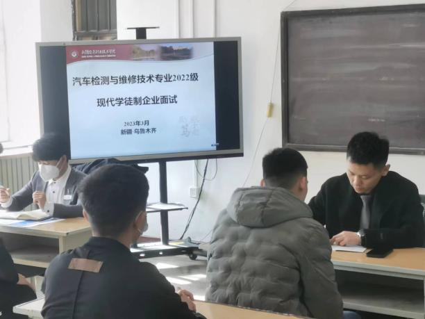 新疆天汇汽车服务有限公司旗下3位人力资源管理人员组成了面试团,对我院42名报名考生进行了面试选拔。面试过程中,面对台下众多的面试官和考官,每位学生自信而从容地进行了自我介绍,言谈举止中流露出对加入学院汽车检测与维修技术专业现代学徒制订单班的真挚渴望及敢于表现自我的信心。负责面试的工作人员仔细听取了他们的自我介绍,并提出适宜的问题来考查考生处理相关问题的能力。
