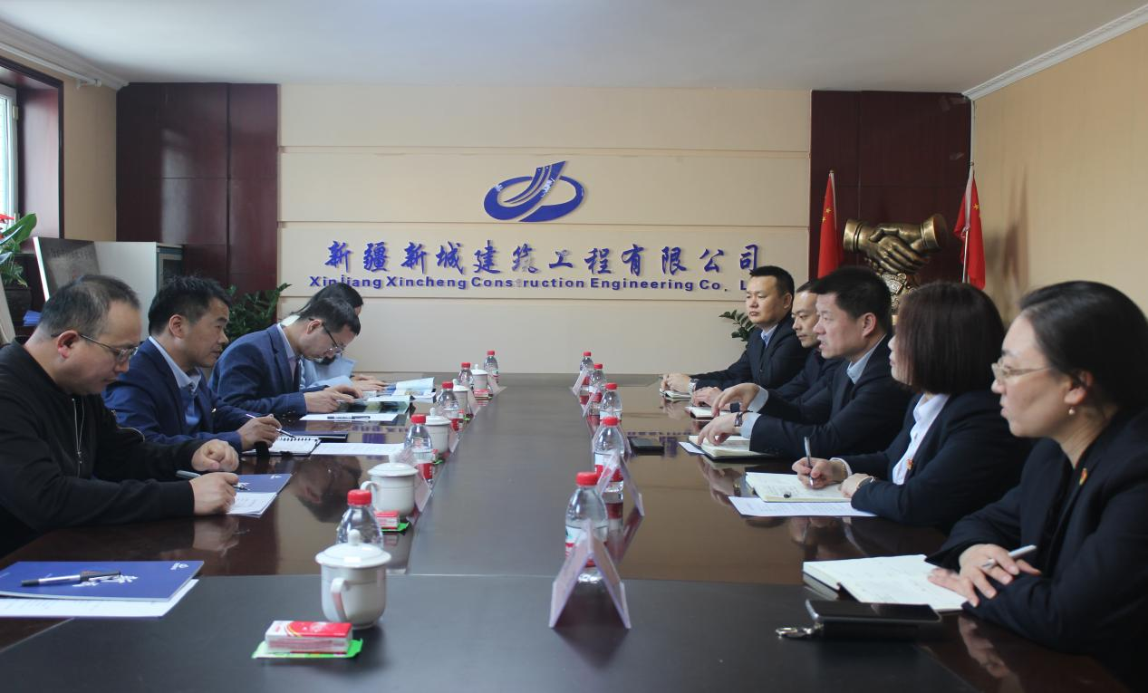 3月29日下午,道路桥梁工程学院院长郭社锋、研究中心主任毛伟、学院专业负责人夏亮亮、李肖等一行4人,赴新疆新城建筑工程有限公司调研,洽谈校企合作。新疆新城建筑工程有限公司党支部书记、总经理张洪涛热忱接待学院一行,双方就校企深入合作展开全方位座谈交流。