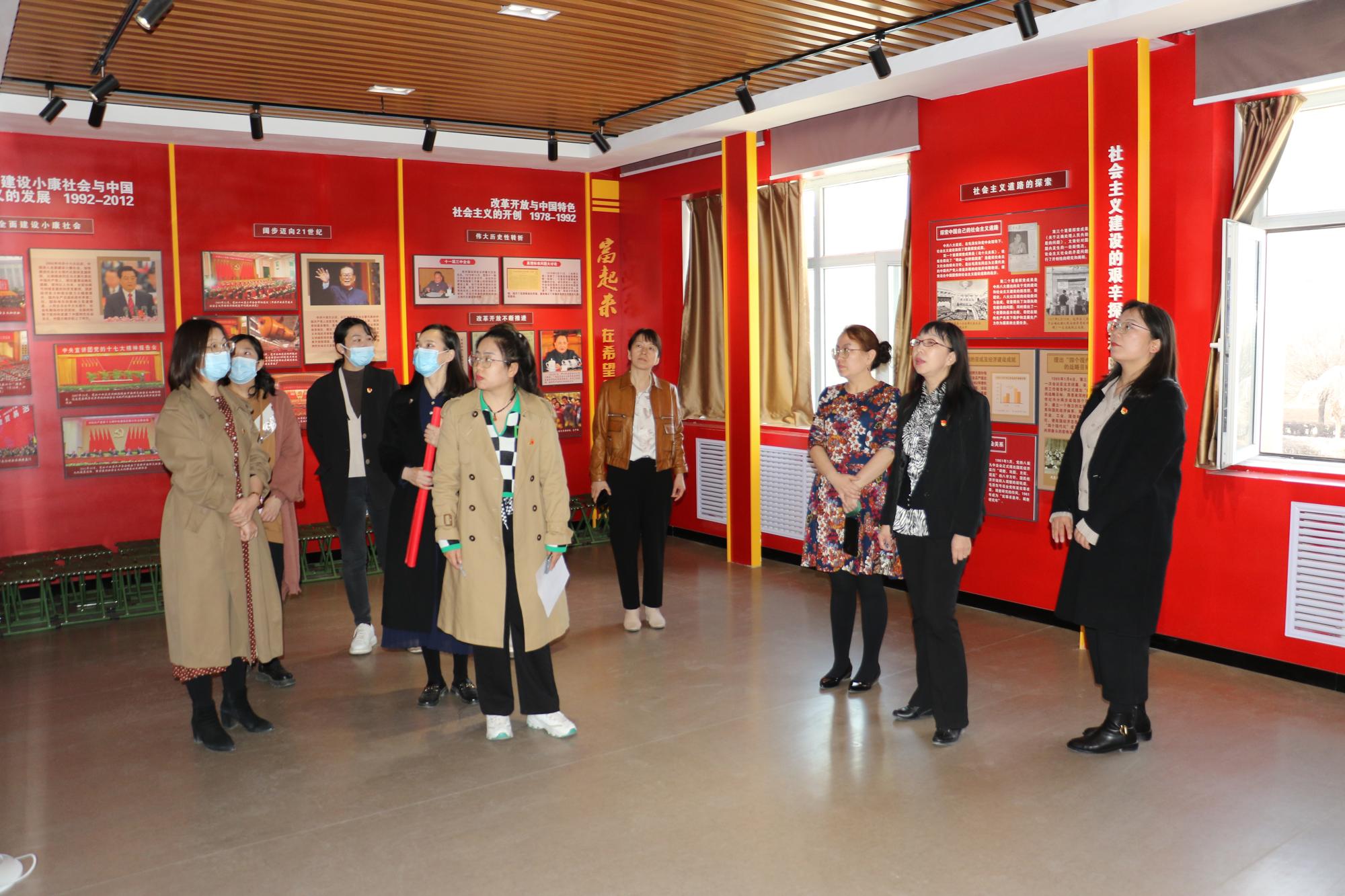 党员同志们在马克思主义学院院长李莉的讲解下参观了中国共产党党史馆、铸牢中华民族共同体意识馆等8个主题馆、3条主题长廊、1个文化厅及1个虚拟仿真思政教学体验中心。活动中,面对鲜红的党旗,全体人员高举右拳庄严宣誓,重温入党誓词,回顾入党初心,感悟初心使命。