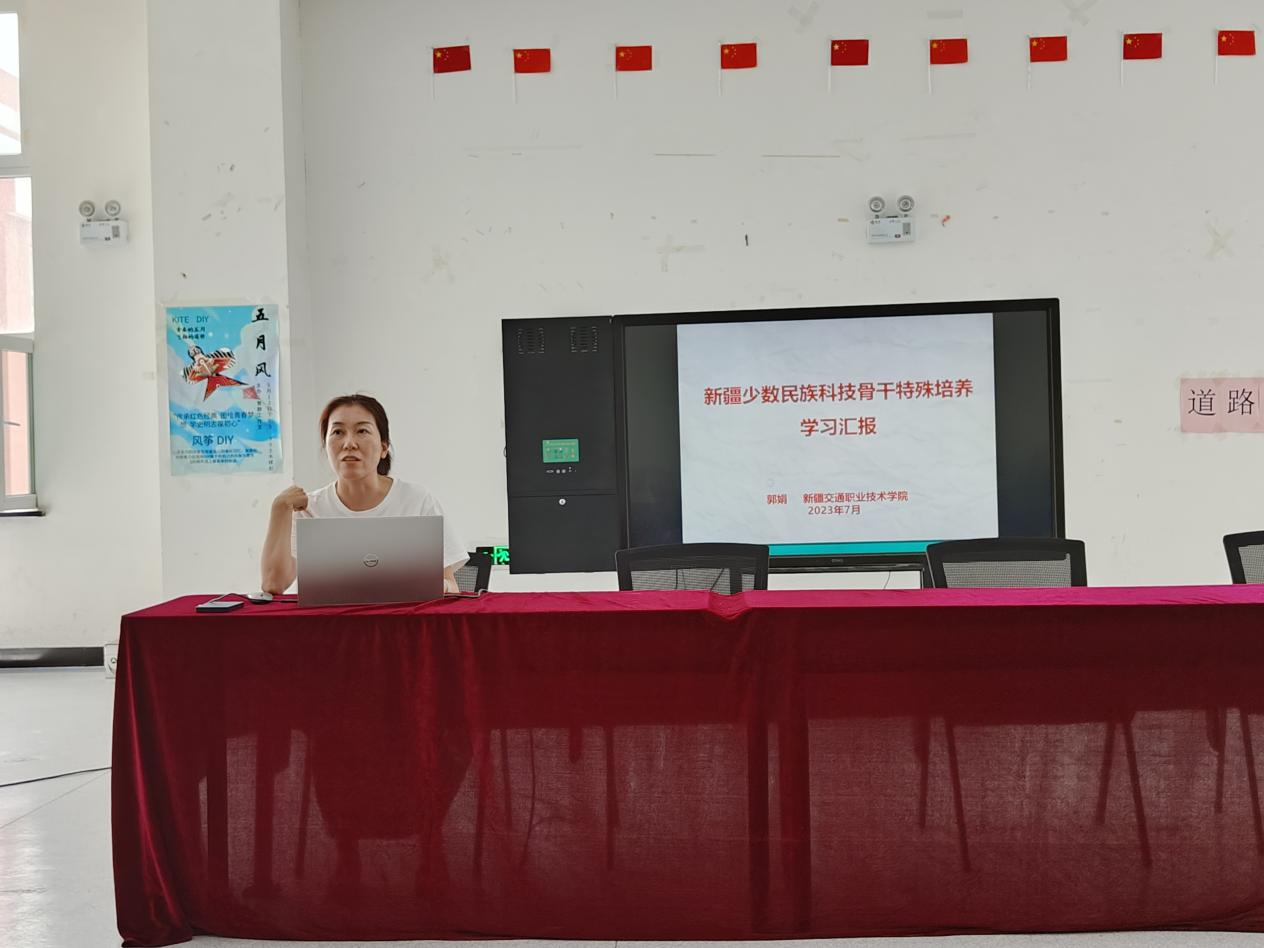 紧接着,由道路桥梁工程学院郭娟老师进行新疆少数民族科技骨干特殊培养学习汇报。郭娟老师向分院全体教职工普及什么是特培学习、特培学习的报名条件及培养方式等内容,从开班讲到结业、从学习讲到生活、从思政、专业技术讲到实践交流。郭娟老师精彩的叙述,让与会的教师们身临其境,深入了解了特培项目,也学到实际可操作的教育教学的方法,拓宽了视野,打开了思路。