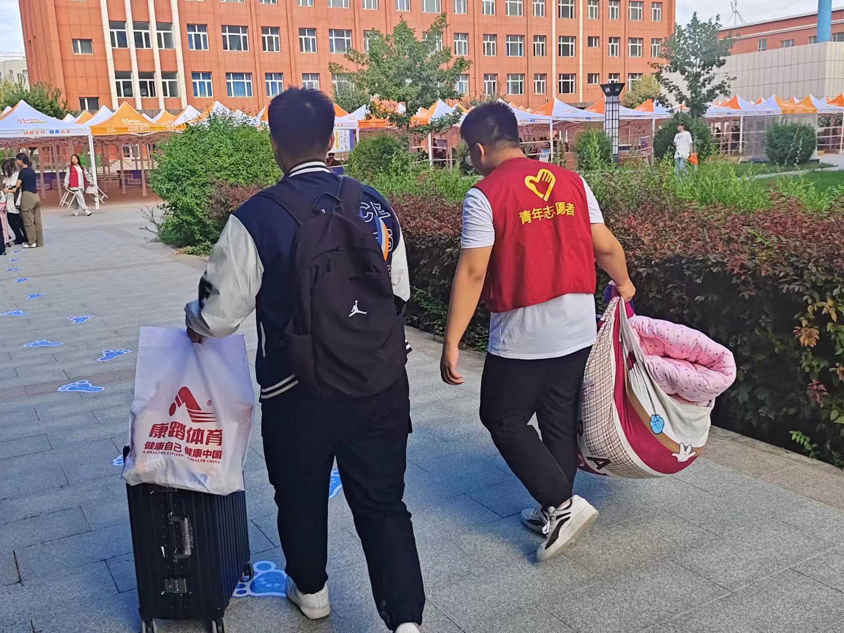 运输管理学院“红·运”辅导员工作室、“高原名班主任工作室”“赵亮名班主任工作室”牵头组成了一个志愿者服务团队,帮助新生们完成注册,领取生活物品,以及入住宿舍等工作。志愿者们满腔热情,热心地欢迎每一位新生的到来,帮家长学生们搬运行李,让刚踏入大学校园的新生们感受到了不一样的温暖。为了让新生尽快地熟悉新的环境,更快地融入学校的生活,志愿者们向新生们简短地介绍了学校的楼层分布,生活注意点,为他们将来的生活提出了自己切身的建议。