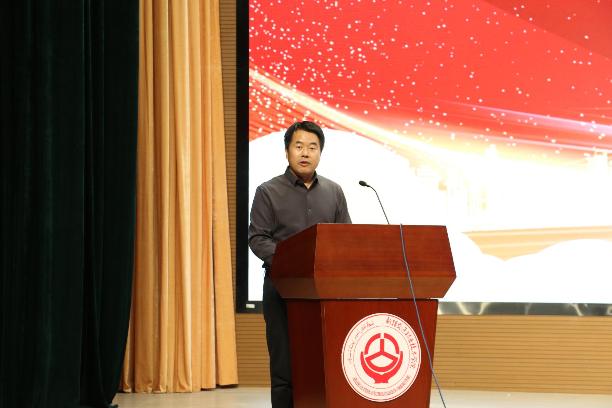 晚会伊始,全体师生齐唱国歌,嘹亮的歌声慷慨激昂,爱国之声响彻礼堂,更在道路桥梁工程学院学子心中回荡。道路桥梁工程学院党总支副书记、院长郭社锋致辞,他要求广大学子不负韶华、奋发图强,用实际行动践行“强国有我”的铮铮誓言,努力成长为堪当民族复兴重任的时代新人,为奋力谱写新疆高质量发展新篇章作出新的更大贡献!