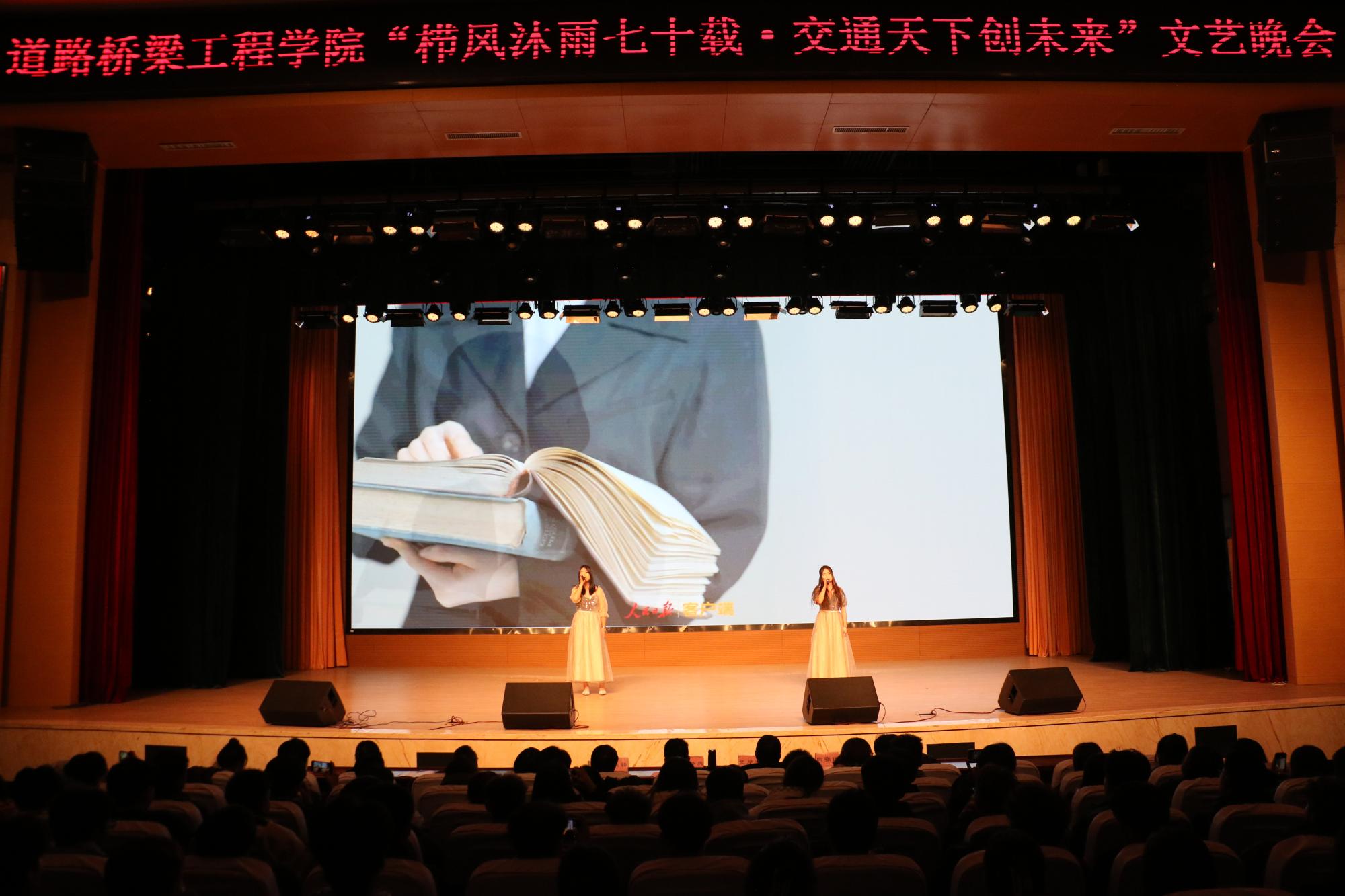 本次晚会包含歌曲、舞蹈、小品、朗诵等多种艺术表现形式,由道路桥梁工程学院学生党支部联合“薪火”辅导员工作室共同承办,分院领导及师生共计700余人参加。