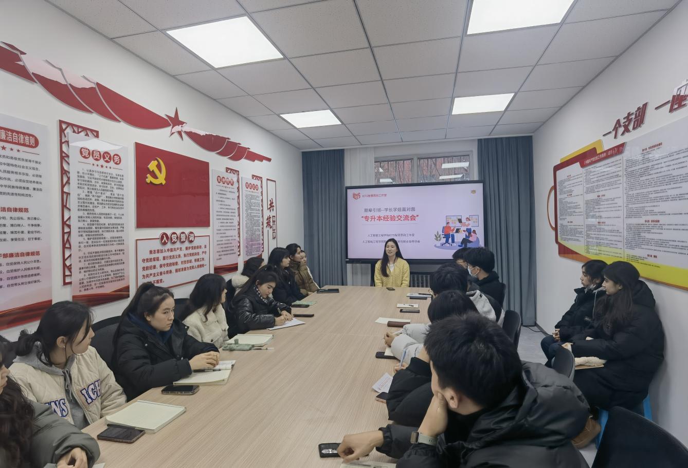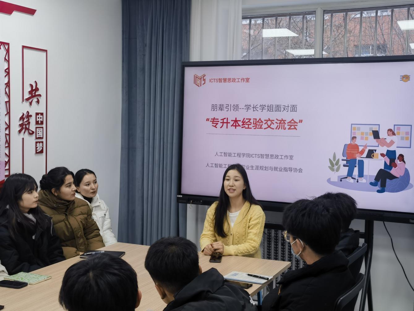 12月11日下午,人工智能工程学院ICTS智慧思政工作室联合人工智能工程学院职业生涯规划与就业指导协会举办了专升本经验交流会,2022级所有志愿专升本考试的学生以班级为单位参加。