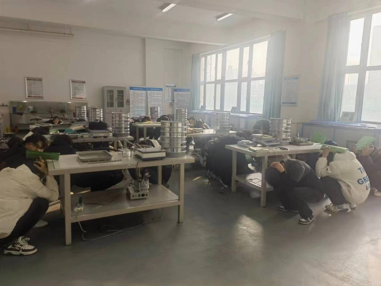 12月20日上午,道路桥梁工程学院组织土木实训中心上课的师生进行了防震安全疏散演练活动。