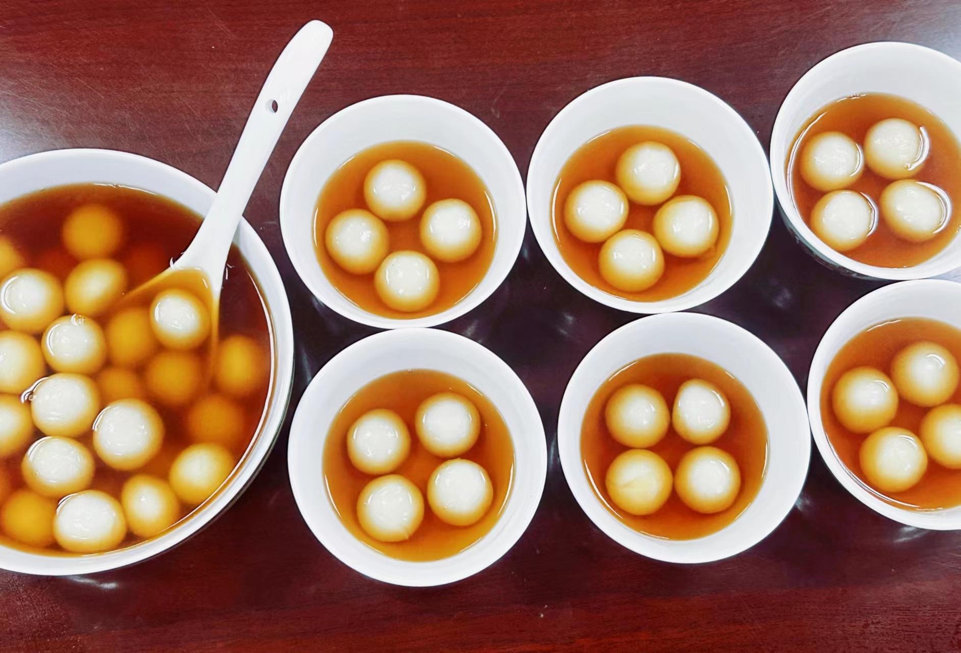 活动伊始,社团指导教师赵晓雪先为大家讲解了冬至的来历及文化内涵,随后同学们纷纷参与到体验活动中,有的煮汤圆、有的烹红茶,随着汤圆的热气与红茶茶香在空气中渐渐蔓延开来,阵阵温馨洋溢在每一位同学的心里,为深冬时刻带来无尽温暖与浓情。大家边吃边谈,结合自己的经历讲述了冬至各地风俗活动,在热闹的气氛中感受着劳动带来的快乐。