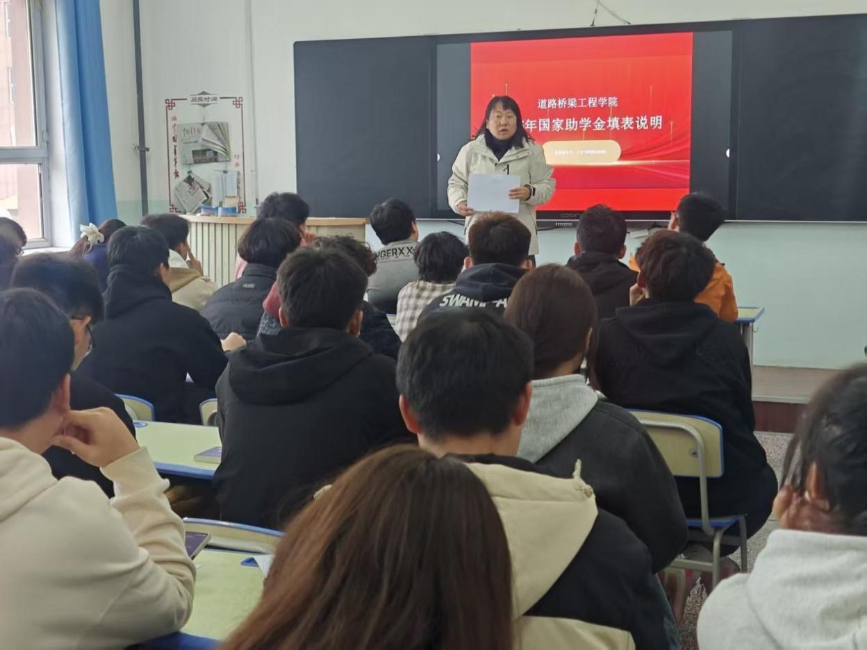 10月14日,道路桥梁工程学院2025年国家助学金评选填表说明会在四号教学楼305教室准时开讲,在校46个班级的资助信息员悉数到场,为后续班级国家助学金申报工作“充电蓄能”。