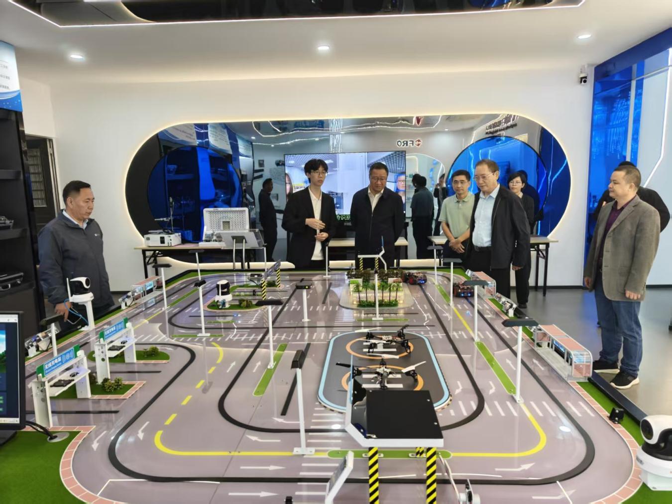 10月22日下午,调研组转战广州,深入广东交通职业技术学院开展调研。与深职大“高精尖”的技术范式不同,这所扎根华南交通枢纽的院校展现出“大交通”特色的实践智慧。近年来,学院紧跟粤港澳区域经济发展与综合交通运输体系建设步伐,以“智慧交通创新驱动,公路水路轨道三路引领,机电信息经济管理人文设计多面发展”为专业布局,形成了对接行业产业、服务区域经济的鲜明特色。学院通过设立产业学院、与企业共建实训基地和资源库,为交通行业培养了大批创新型、复合型高素质技术技能人才。在广东交通职业技术学院院长罗毅陪同下,调研组一行实地走访了学校全国人工智能职业教育产教融合共同体、人工智能开放型区域产教融合实践中心,刘洪波表示,广东交通职业技术学院的专业群建设经验为我们提供有益参考,下一步,我们将结合新疆交通物流、能源通道建设需求,打造具有区域特色的高水平职业本科专业群。