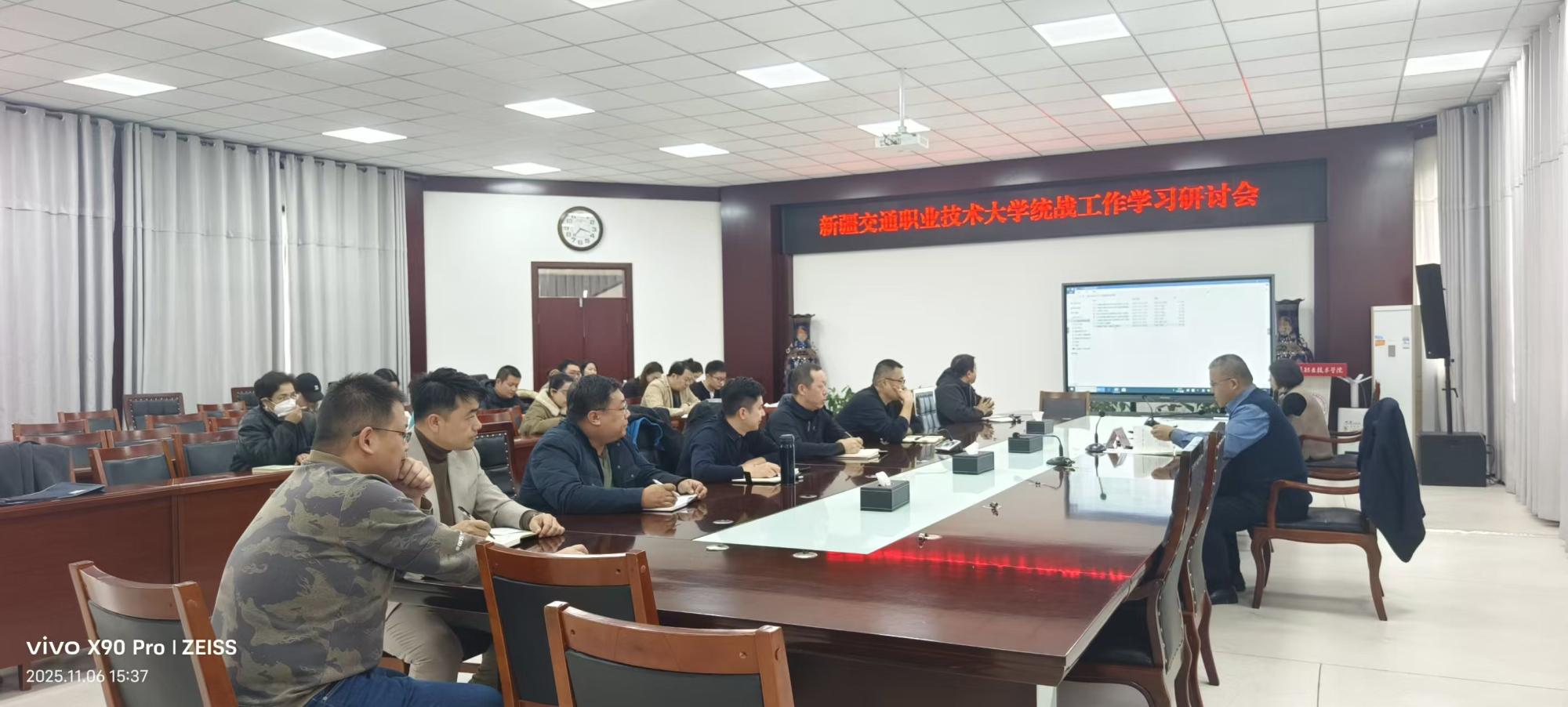 为夯实工作基础,会议审议了《中共新疆交通职业技术大学委员会落实统战工作主体责任清单》等五项制度,集中学习了《中国共产党统一战线工作条例》重点章节,通过“制度+理论”的双重学习,进一步提升了学校统战工作的规范化、制度化水平。随后,在学习交流中,参会人员围绕统战工作重点内容,结合工作实际深入剖析问题、探讨工作思路、提出务实建议,为后续工作的深入开展指明了方向,提供了遵循。
